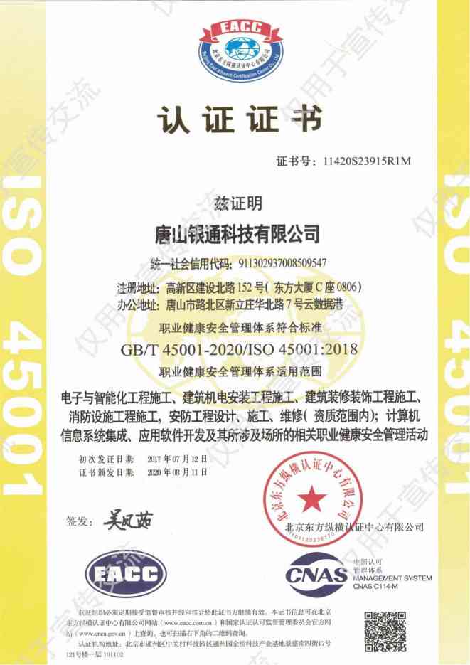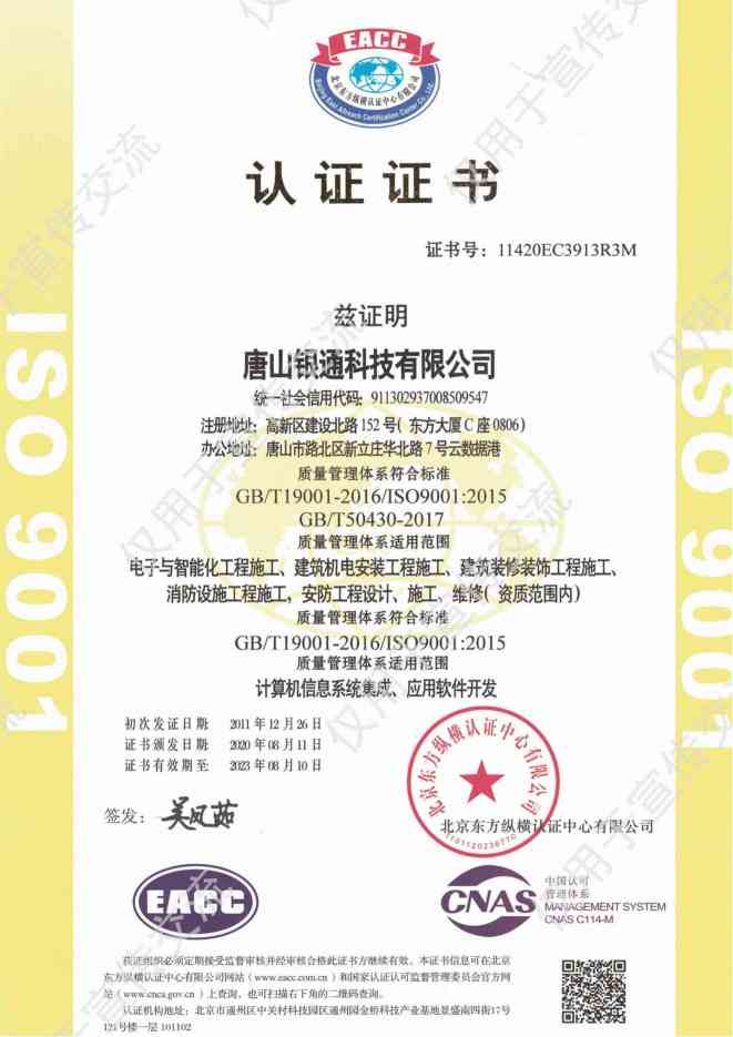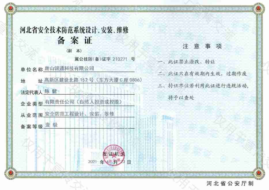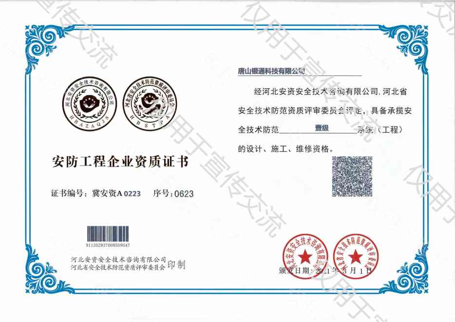 公司已取得电子工程与智能化工程专业承包一级资质,消防设施工程专业承包一级、安全防范一级资质,建筑机电设备安装工程专业承包贰级资质,建筑装饰装修工程专业承包贰级资质,城市及道路照明工程专业承包叁级,建筑智能化系统专项设计资质、2018年通过高新技术企业。安全生产许可证书,系统集成三级资质。荣获“高新技术企业”“河北省安防范系统工程设计施工维修优秀工程商”、“河北省优秀科技企业”、“守合同重信用企业”、“售后服务有保障单位”、“AAA级信用企业”等多项荣誉和称号,是河北省安防协会副理事长单位、中国演艺设备会员单位、中国石油入网会员单位。